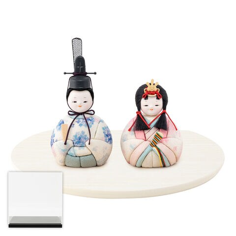 雛人形 コンパクト おしゃれ 最新 木目込み お雛様 かわいい ひな人形 ぷりふあ Halfmoon -半月- 平飾り ケース飾り 親王飾り 【紫陽・木目調ホワイト ブラックケース】 インテリア モダン おひなさま 雛 今どき