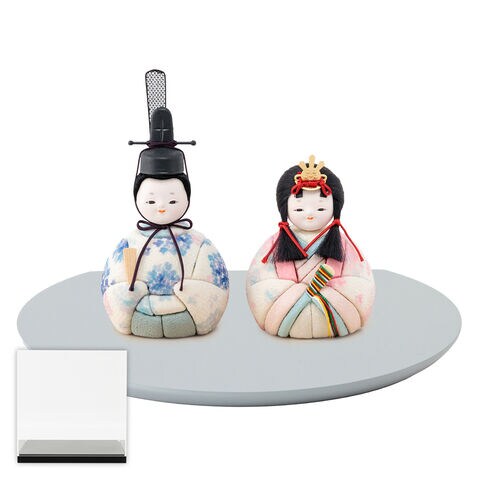 雛人形 コンパクト おしゃれ 最新 木目込み お雛様 かわいい ひな人形 ぷりふあ Halfmoon -半月- 平飾り ケース飾り 親王飾り 【紫陽・グレー ブラックケース】 インテリア モダン おひなさま 雛 今どき
