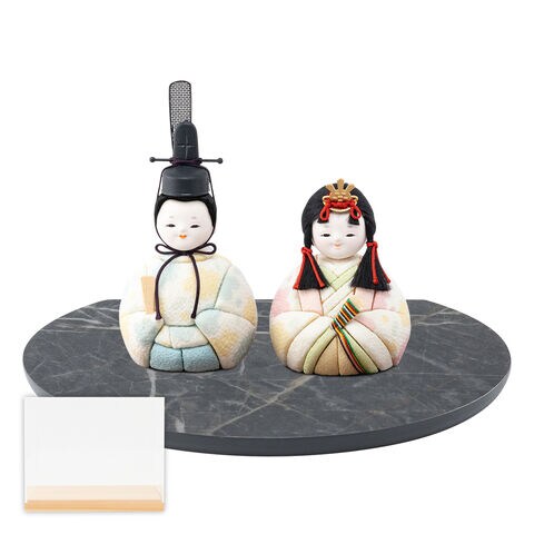 雛人形 コンパクト おしゃれ 最新 木目込み お雛様 かわいい ひな人形 ぷりふあ Halfmoon -半月- 平飾り ケース飾り 親王飾り 【風羽・大理石調グレー ナチュラルケース】 インテリア モダン おひなさま 雛 今どき