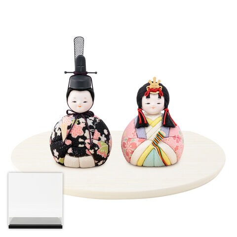 雛人形 コンパクト おしゃれ 最新 木目込み お雛様 かわいい ひな人形 ぷりふあ Halfmoon -半月- 平飾り ケース飾り 親王飾り 【希依・木目調ホワイト ブラックケース】 インテリア モダン おひなさま 雛 今どき