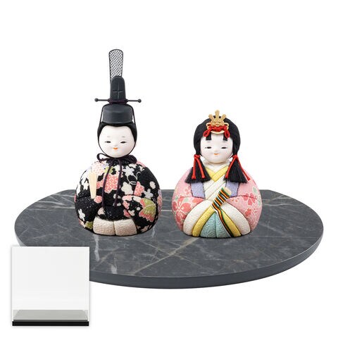 雛人形 コンパクト おしゃれ 最新 木目込み お雛様 かわいい ひな人形 ぷりふあ Halfmoon -半月- 平飾り ケース飾り 親王飾り 【希依・大理石調グレー ブラックケース】 インテリア モダン おひなさま 雛 今どき