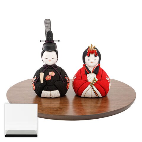 雛人形 コンパクト おしゃれ 最新 木目込み お雛様 かわいい ひな人形 ぷりふあ Halfmoon -半月- 平飾り ケース飾り 親王飾り 【由梅・ウォールナット ブラックケース】 インテリア モダン おひなさま 雛 今どき