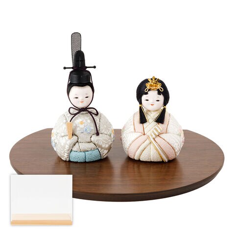 雛人形 コンパクト おしゃれ 最新 木目込み お雛様 かわいい ひな人形 ぷりふあ Halfmoon -半月- 平飾り ケース飾り 親王飾り 【茉桜・ウォールナット ナチュラルケース】 インテリア モダン おひなさま 雛 今どき