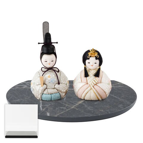 雛人形 コンパクト おしゃれ 最新 木目込み お雛様 かわいい ひな人形 ぷりふあ Halfmoon -半月- 平飾り ケース飾り 親王飾り 【茉桜・大理石調グレー ブラックケース】 インテリア モダン おひなさま 雛 今どき