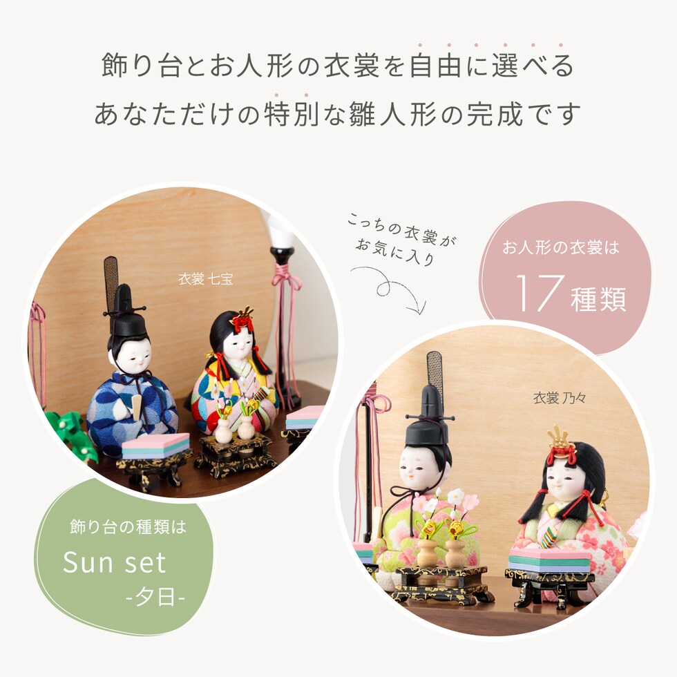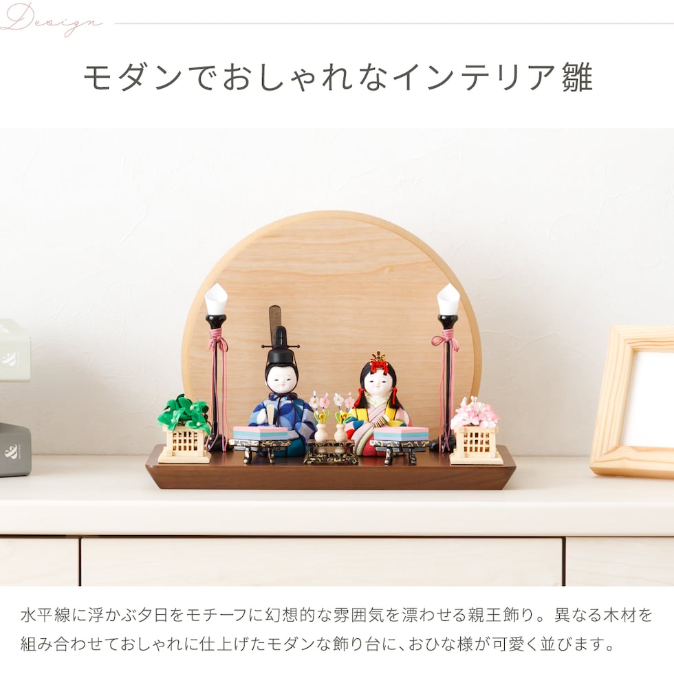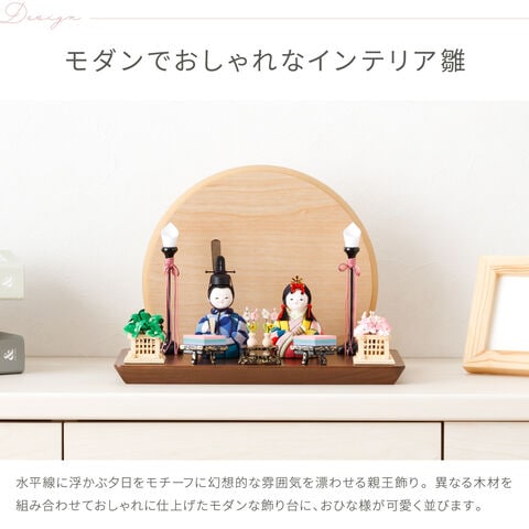 雛人形 コンパクト おしゃれ かわいい 最新 小さい 木目込み ぷりふあ 国産家具認定 Sunset -夕日- 平飾り 親王飾り ケース飾り 【風羽 ケース付属】 ひな人形 インテリア モダン 雛 お雛様 おひなさま 今どき
