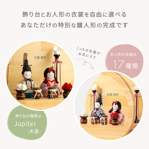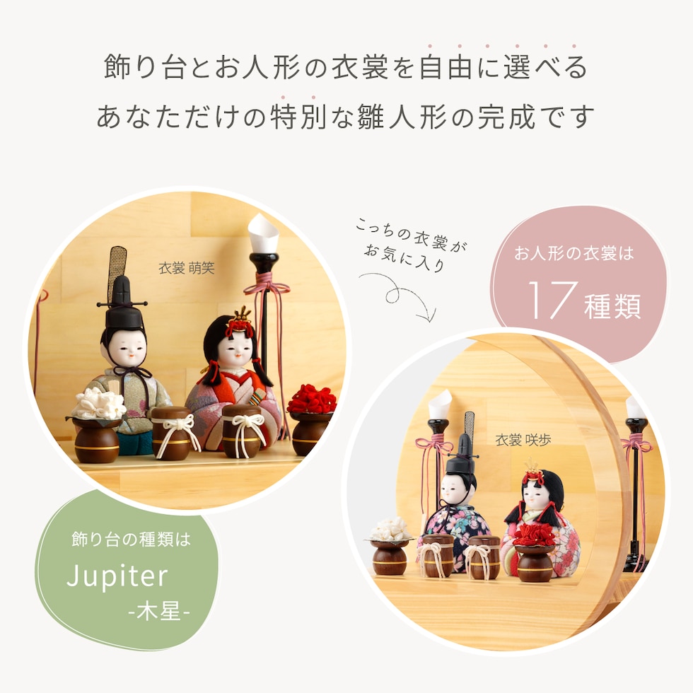 雛人形 コンパクト お雛さま 木目込み おしゃれ かわいい 丸型 ひな人形 ぷりふあ Jupiter -木星- 親王飾り 平飾り 【咲歩】 インテリア お雛様 おひなさま 雛 木目込人形飾り 最新 今どき モダン