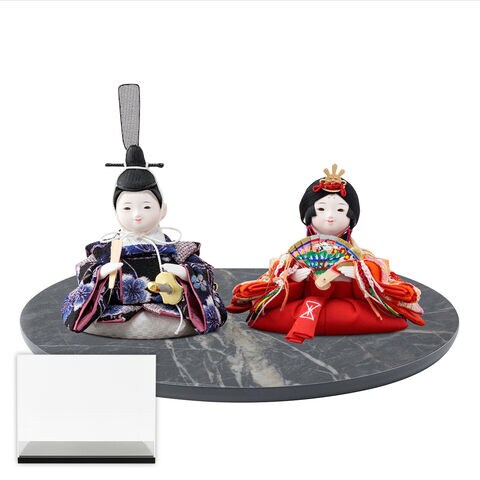 雛人形 コンパクト おしゃれ 今どき 小さい ぷりふあ 衣(ころも) Halfmoon -半月- おひなさま 親王飾り 平飾り ケース飾り 【奏・大理石調グレー ブラックケース】 木製 モダン インテリア ひな人形 かわいい