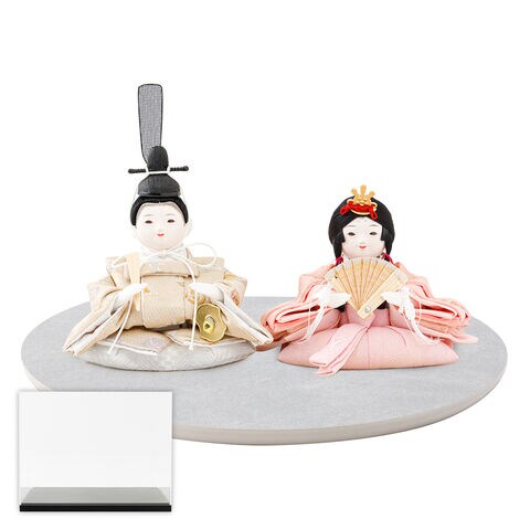 雛人形 コンパクト おしゃれ 今どき 小さい ぷりふあ 衣(ころも) Halfmoon -半月- おひなさま 親王飾り 平飾り ケース飾り 【詩・石目調ライトグレー ブラックケース】 木製 モダン インテリア ひな人形 かわいい