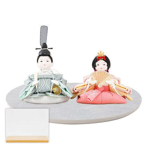 雛人形 コンパクト おしゃれ 今どき 小さい ぷりふあ 衣(ころも) Halfmoon -半月- おひなさま 親王飾り 平飾り ケース飾り 【麗・石目調ライトグレー ナチュラルケース】 木製 モダン インテリア ひな人形 かわいい