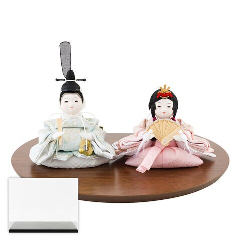 雛人形 コンパクト おしゃれ 今どき 小さい ぷりふあ 衣(ころも) Halfmoon -半月- おひなさま 親王飾り 平飾り ケース飾り 【凪・ウォールナット ブラックケース】 木製 モダン インテリア ひな人形 かわいい