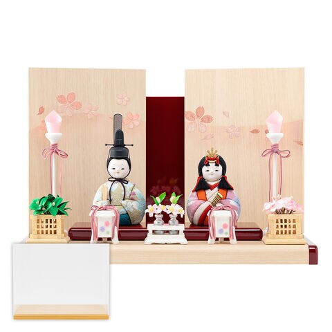 雛人形 コンパクト おしゃれ かわいい 雛 親王飾り インテリア 木目込み ぷりふあ Wood style -金彩舞桜- 平飾り ケース飾り 【萌笑 ケース付属】 モダン お雛様 おひなさま 最新 今どき