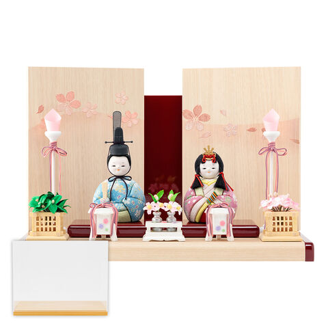 雛人形 コンパクト おしゃれ かわいい 雛 親王飾り インテリア 木目込み ぷりふあ Wood style -金彩舞桜- 平飾り ケース飾り 【桜実 ケース付属】 モダン お雛様 おひなさま 最新 今どき
