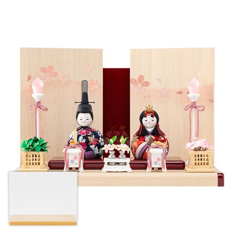 雛人形 コンパクト おしゃれ かわいい 雛 親王飾り インテリア 木目込み ぷりふあ Wood style -金彩舞桜- 平飾り ケース飾り 【三葉 ケース付属】 モダン お雛様 おひなさま 最新 今どき