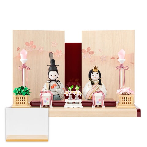 雛人形 コンパクト おしゃれ かわいい 雛 親王飾り インテリア 木目込み ぷりふあ Wood style -金彩舞桜- 平飾り ケース飾り 【志乃 ケース付属】 モダン お雛様 おひなさま 最新 今どき