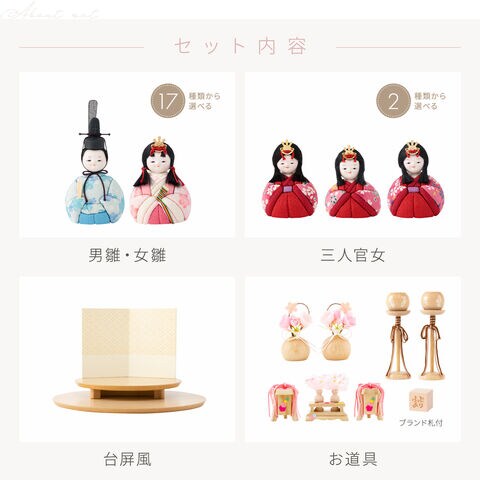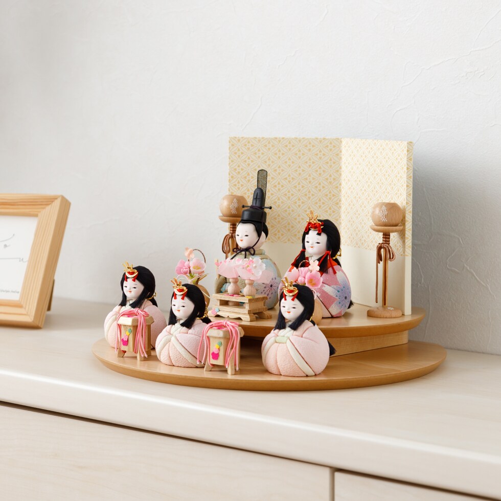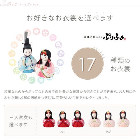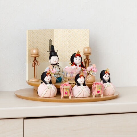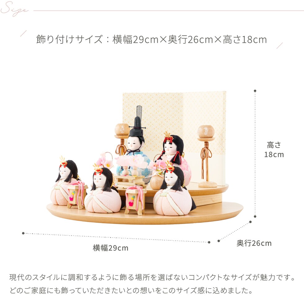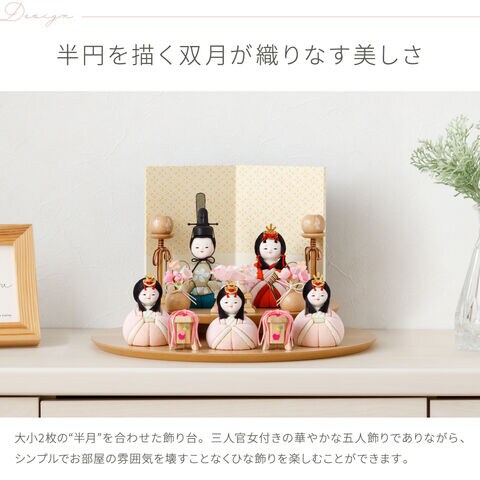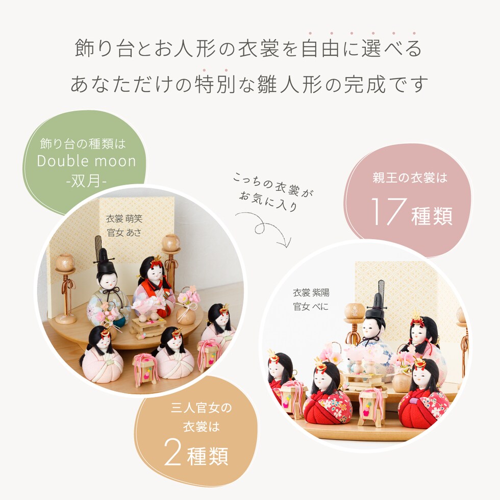 雛人形 コンパクト おしゃれ 雛 かわいい 木目込み ぷりふあ Double moon -双月- 五人飾り 三人官女付き 段飾り 【紫陽 あさ】 インテリア モダン おひなさま 木目込人形飾り 最新 今どき