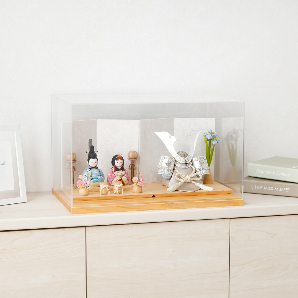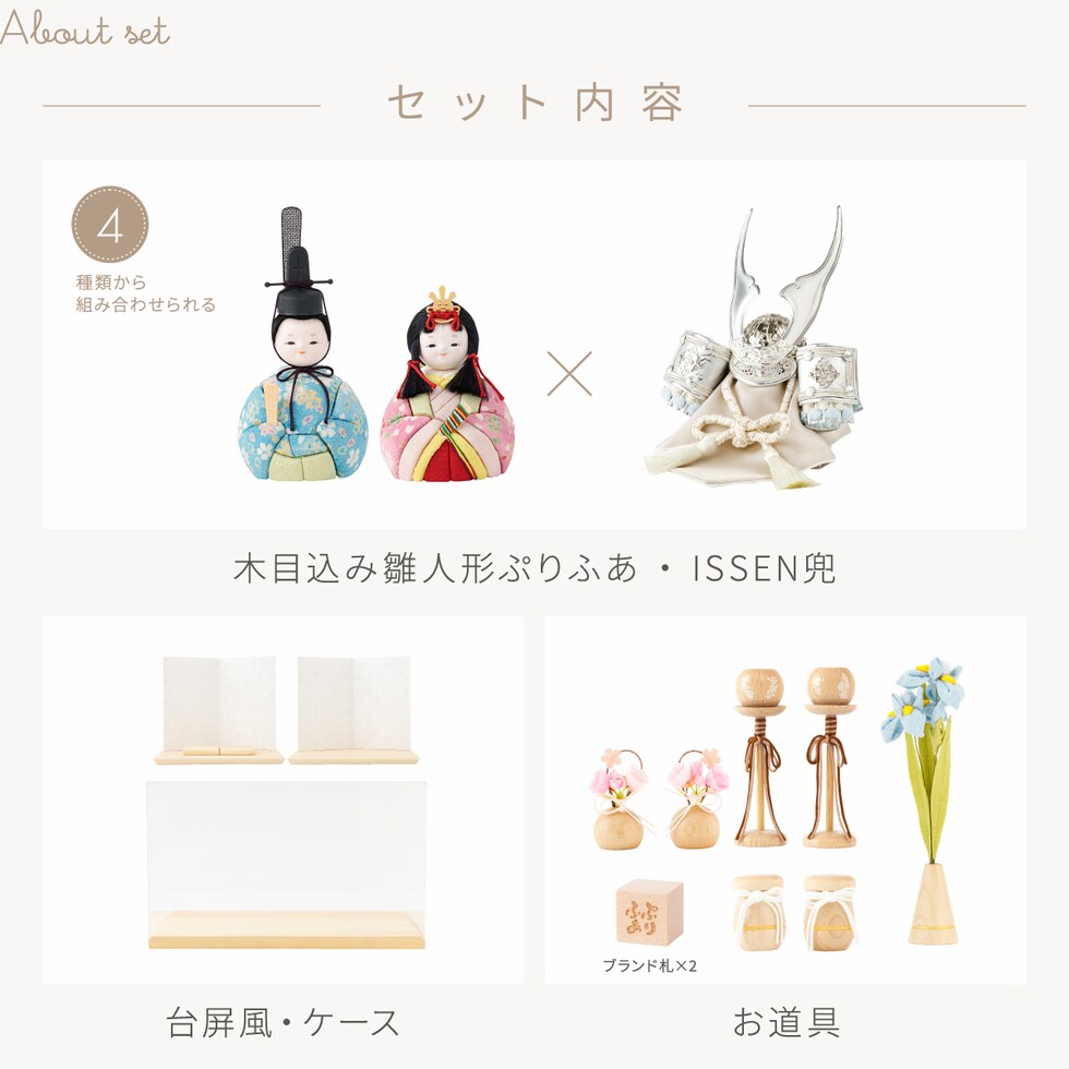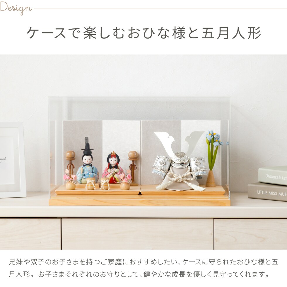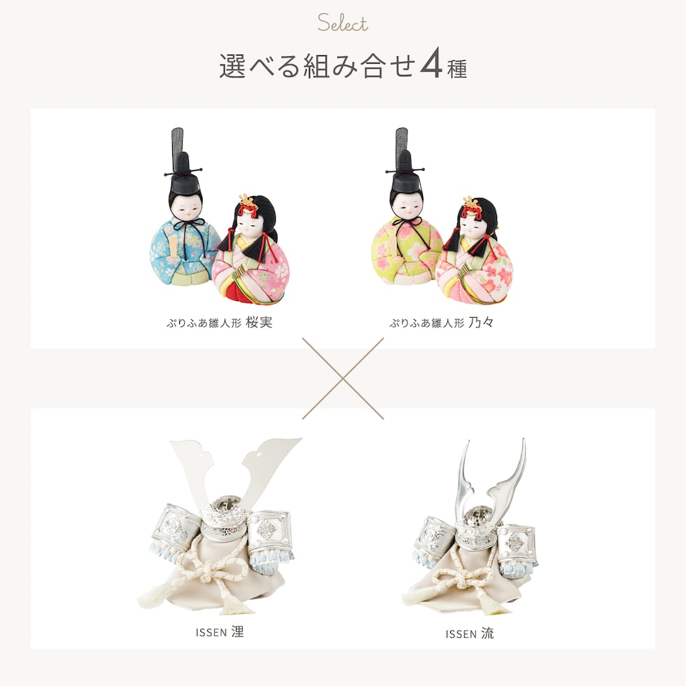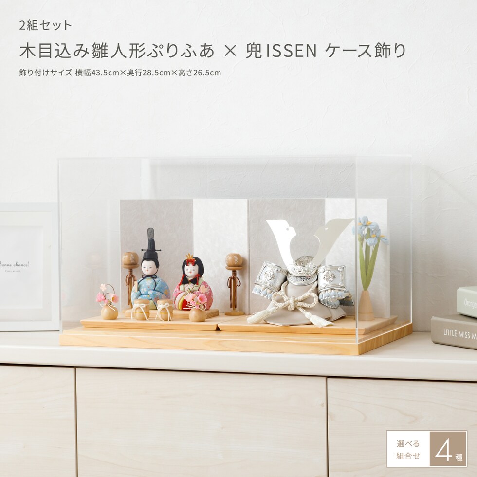 雛人形 五月人形 親王 モダン ケース飾り 兄妹 姉弟 双子 2組セット 木目込み雛人形ぷりふあ×兜ISSEN 兜飾り ひな人形 【桜実 流】 おしゃれ インテリア 最新 今どき 雛 お雛様 おひなさま 兜 こどもの日 初節句 桃 端午 節句