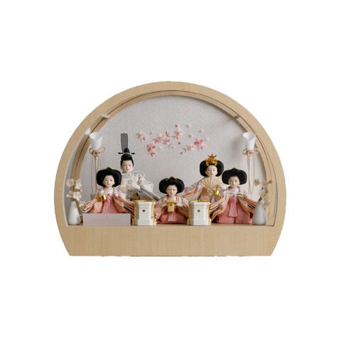 雛人形 コンパクト おしゃれ モダン 五人飾り 官女 インテリア お雛様 雛 高級 PREFER CLASSIC ひな人形 [丸型ケース飾り お道具付 貝桶 油灯 枝桜白 人形極々小サイズ 選べる金襴人絹衣裳2種類 郁乃 澄葉] 【澄葉】