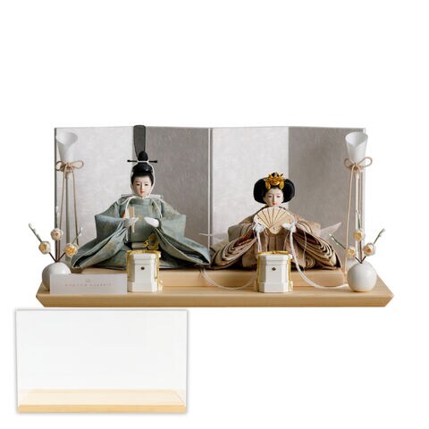 雛人形 コンパクト おしゃれ モダン 親王飾り インテリア お雛様 雛 高級 PREFER CLASSIC ひな人形 [檜台 白屏風 平飾り お道具付 貝桶 油灯 白梅 人形極々小サイズ 選べる綿織物衣裳2種類 楚那 梨未] 【梨未 ケース付属】