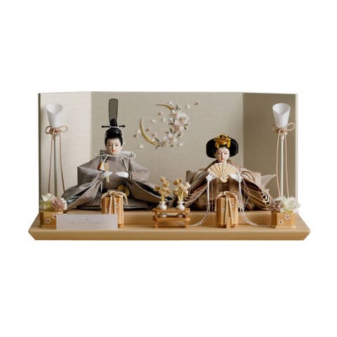雛人形 コンパクト おしゃれ モダン 親王飾り インテリア お雛様 雛 高級 PREFER CLASSIC ひな人形 [檜台 桜月刺繍屏風 平飾り お道具付 貝桶花 油灯 人形極々小サイズ 選べる綿織物衣裳2種類 楚那 梨未] 【楚那 ケースなし】