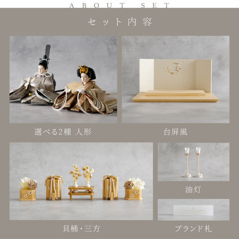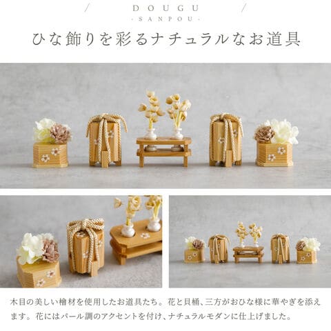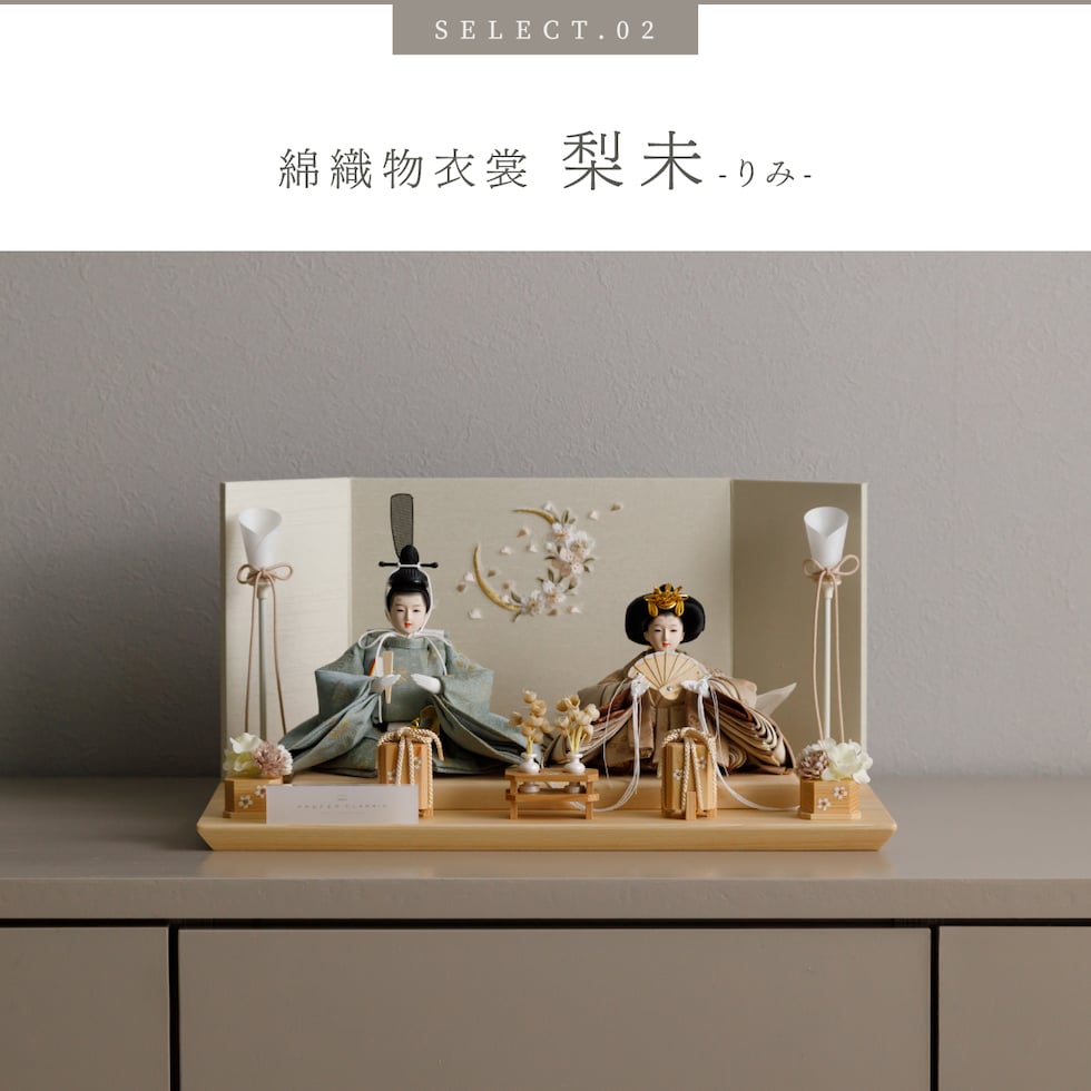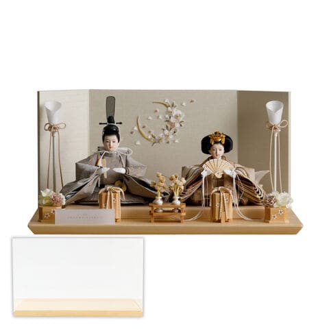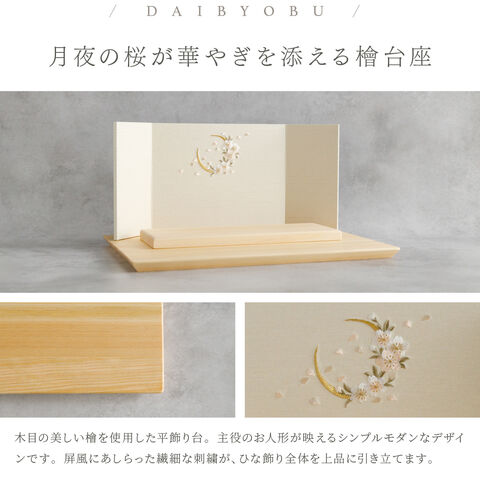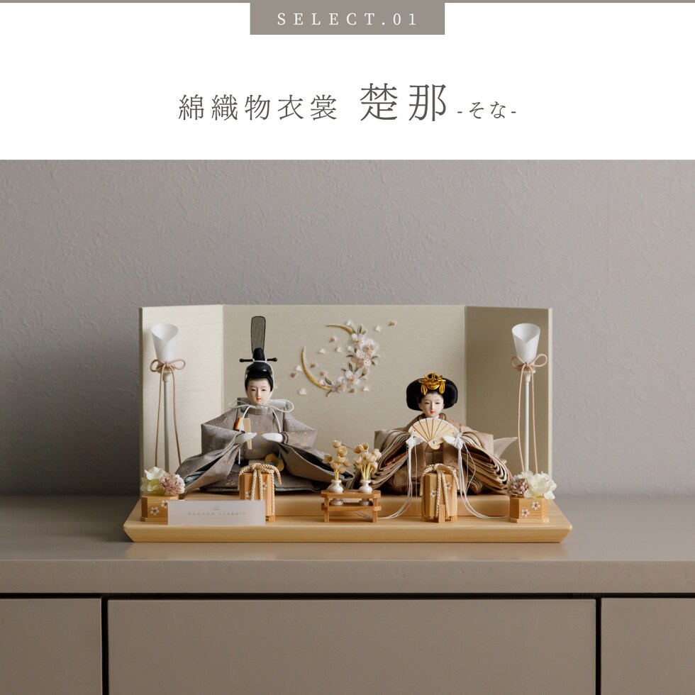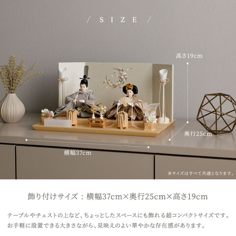 雛人形 コンパクト おしゃれ モダン 親王飾り インテリア お雛様 雛 高級 PREFER CLASSIC ひな人形 [檜台 桜月刺繍屏風 平飾り お道具付 貝桶花 油灯 人形極々小サイズ 選べる綿織物衣裳2種類 楚那 梨未] 【楚那 ケース付属】
