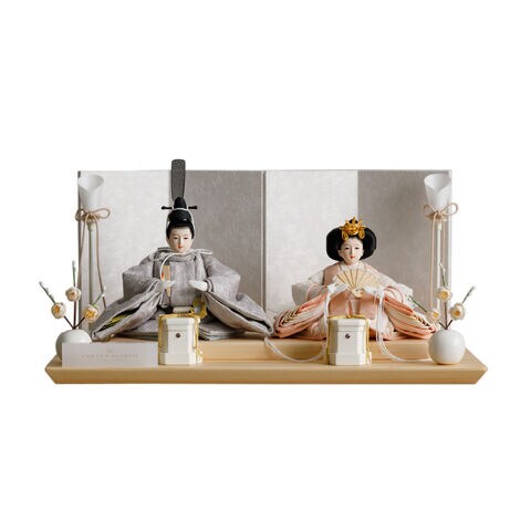 雛人形 コンパクト おしゃれ モダン 親王飾り インテリア お雛様 雛 高級 PREFER CLASSIC ひな人形 [檜台 白屏風 平飾り お道具付 貝桶 油灯 選べる道具2種類 枝桜ピンク 白梅 人形極々小サイズ 選べる衣裳4種類 澄葉 郁乃 優白 千景] 【郁乃・白梅 ケースなし】