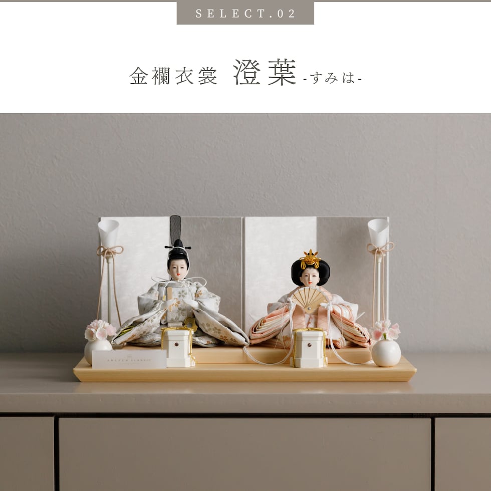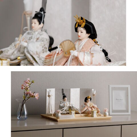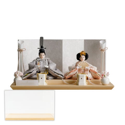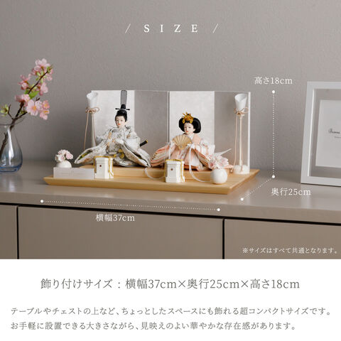 雛人形 コンパクト おしゃれ モダン 親王飾り インテリア お雛様 雛 高級 PREFER CLASSIC ひな人形 [檜台 白屏風 平飾り お道具付 貝桶 桜橘 油灯 人形極々小サイズ 選べる衣裳3種類 郁乃 澄葉 千景] 【郁乃 ケース付属】
