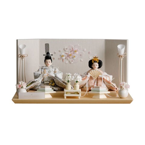 雛人形 コンパクト おしゃれ モダン 親王飾り インテリア お雛様 雛 高級 PREFER CLASSIC ひな人形 [檜台 桜霞屏風 平飾り お道具付 菱餅三方 桜橘 油灯 人形極々小サイズ 選べる衣裳3種類 郁乃 澄葉 千景] 【澄葉 ケースなし】