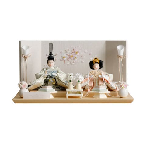 雛人形 コンパクト おしゃれ モダン 親王飾り インテリア お雛様 雛 高級 PREFER CLASSIC ひな人形 [檜台 桜霞屏風 平飾り お道具付 菱餅三方 桜橘 油灯 人形極々小サイズ 選べる衣裳3種類 郁乃 澄葉 千景] 【千景 ケースなし】