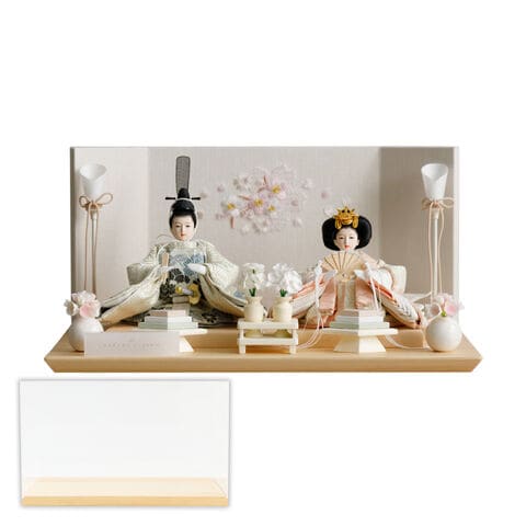 雛人形 コンパクト おしゃれ モダン 親王飾り インテリア お雛様 雛 高級 PREFER CLASSIC ひな人形 [檜台 桜霞屏風 平飾り お道具付 菱餅三方 桜橘 油灯 人形極々小サイズ 選べる衣裳3種類 郁乃 澄葉 千景] 【千景 ケース付属】
