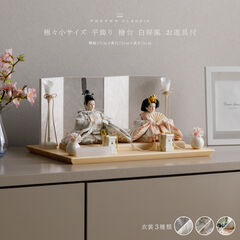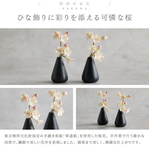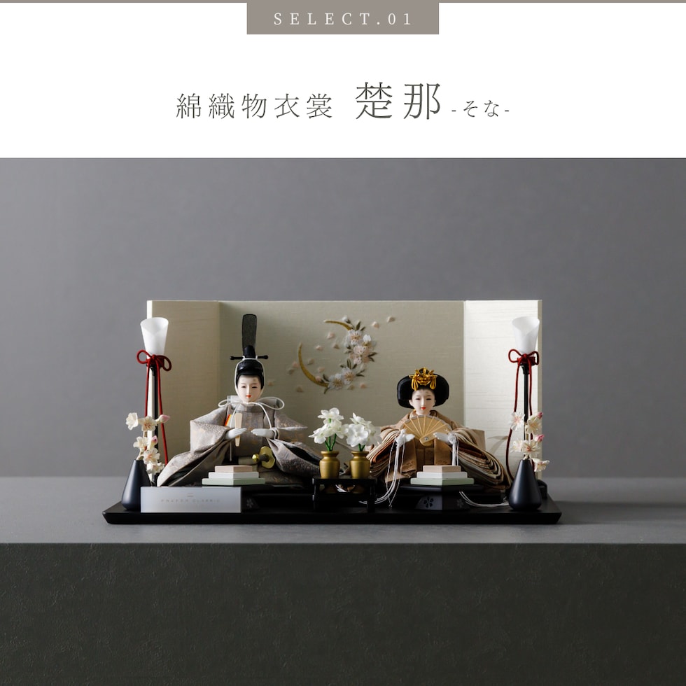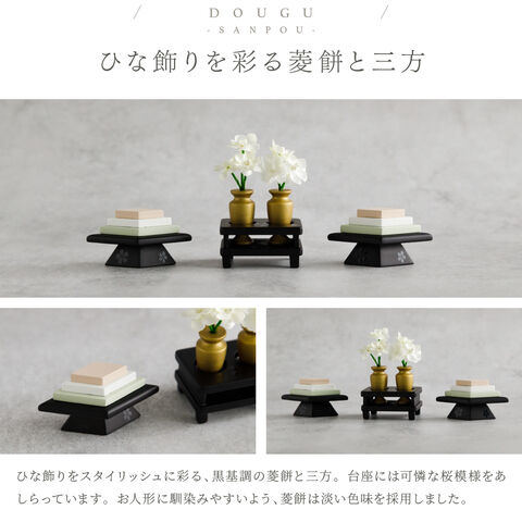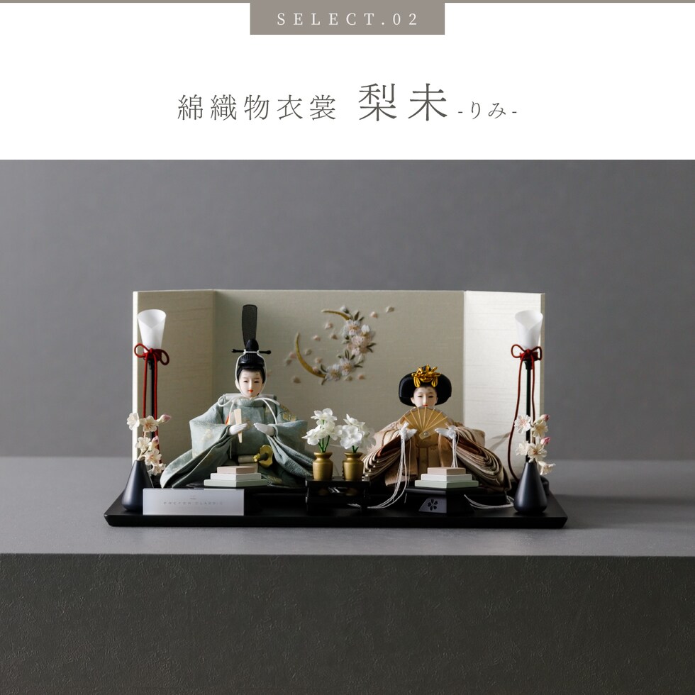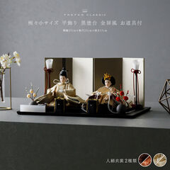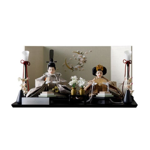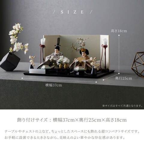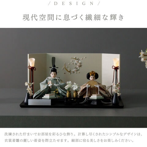 雛人形 コンパクト おしゃれ モダン 親王飾り インテリア お雛様 雛 高級 PREFER CLASSIC ひな人形 [黒塗台 桜月刺繍屏風 平飾り お道具付 菱餅三方 油灯 枝桜白 人形極々小サイズ 選べる綿織物衣裳2種類 楚那 梨未] 【楚那 ケースなし】
