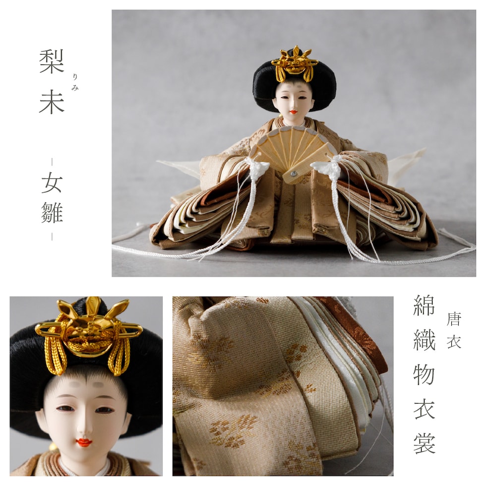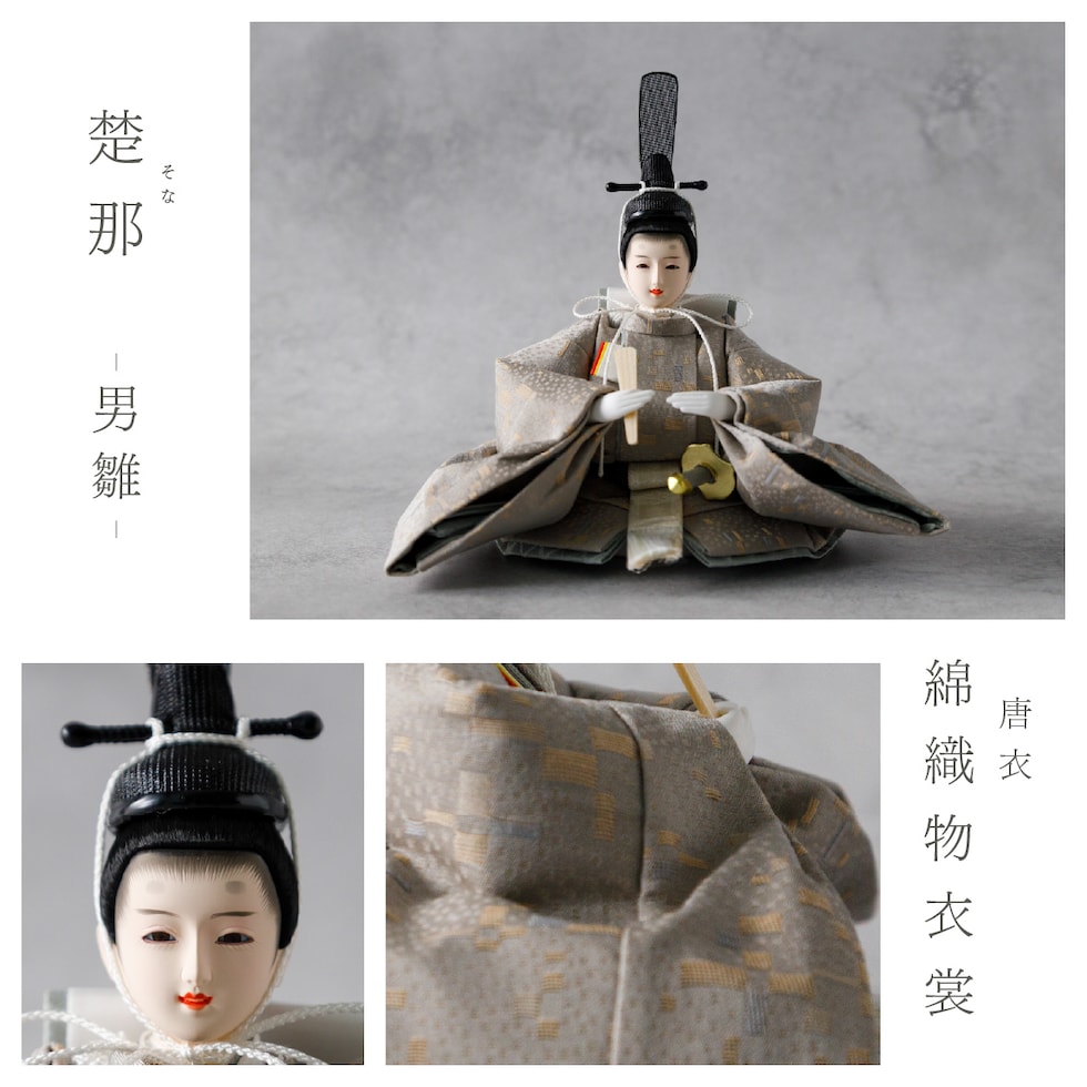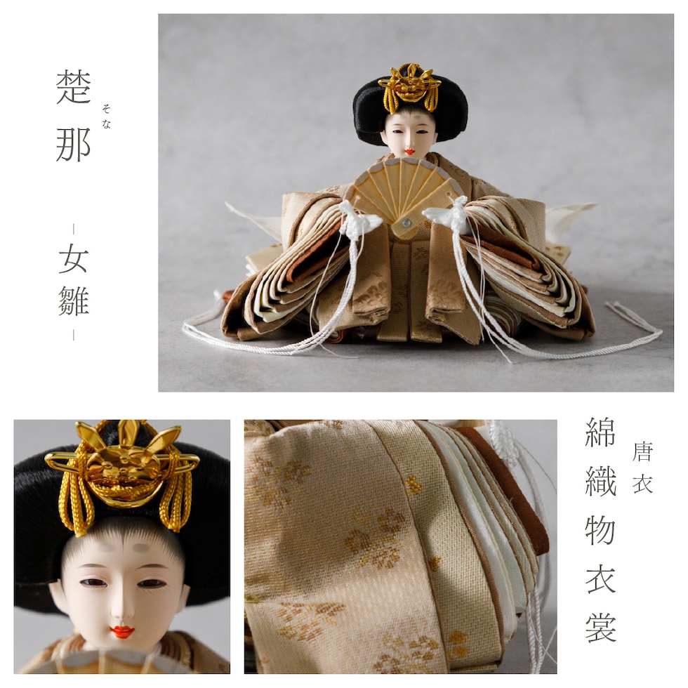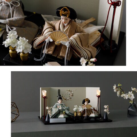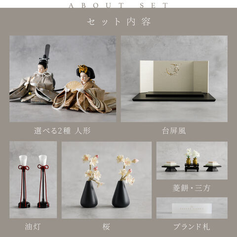 雛人形 コンパクト おしゃれ モダン 親王飾り インテリア お雛様 雛 高級 PREFER CLASSIC ひな人形 [黒塗台 桜月刺繍屏風 平飾り お道具付 菱餅三方 油灯 枝桜白 人形極々小サイズ 選べる綿織物衣裳2種類 楚那 梨未] 【楚那 ケースなし】