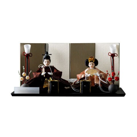 雛人形 コンパクト おしゃれ モダン 親王飾り インテリア お雛様 雛 高級 PREFER CLASSIC ひな人形 [黒塗台 金屏風 平飾り お道具付 貝桶 油灯 紅白梅 人形極々小サイズ 選べる人絹衣裳2種類 縁路 月城] 【縁路 ケースなし】