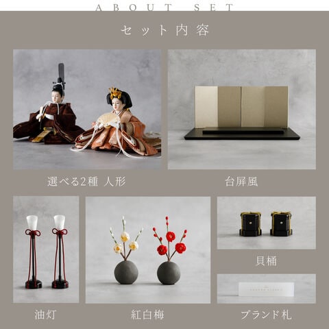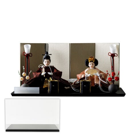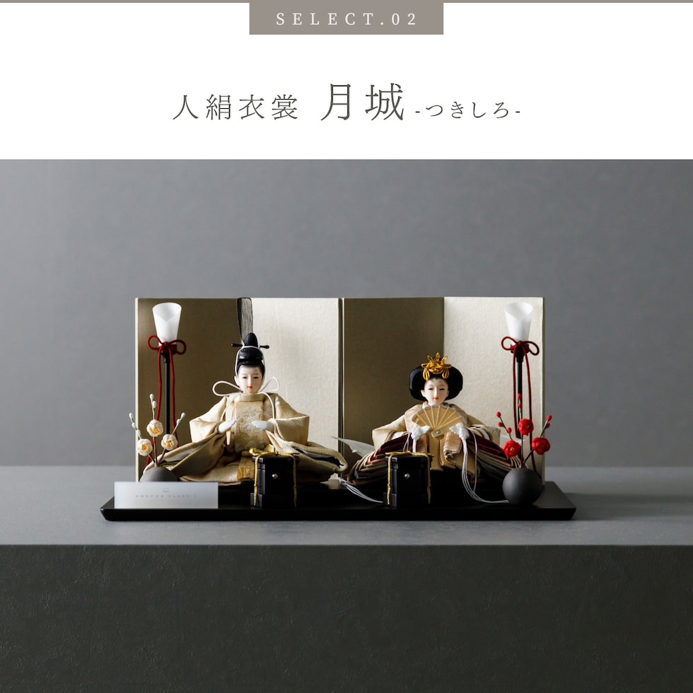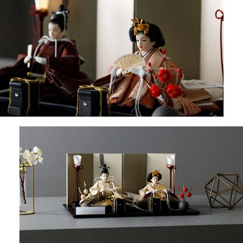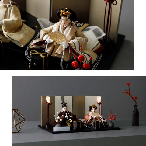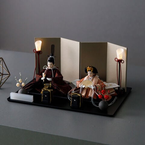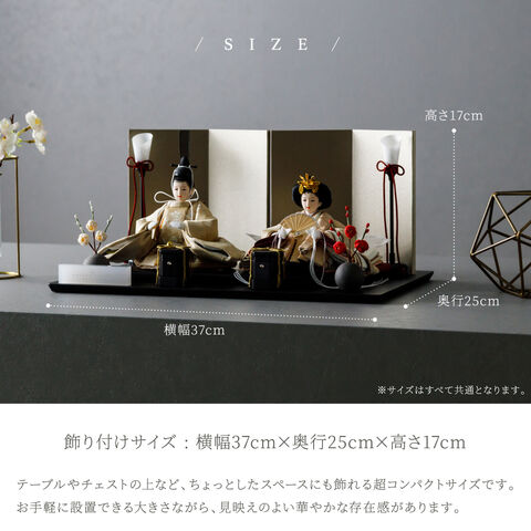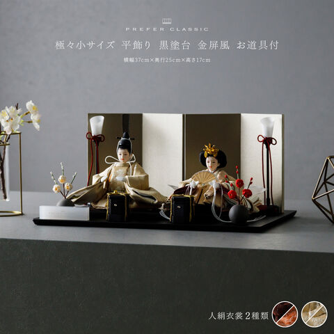 雛人形 コンパクト おしゃれ モダン 親王飾り インテリア お雛様 雛 高級 PREFER CLASSIC ひな人形 [黒塗台 金屏風 平飾り お道具付 貝桶 油灯 紅白梅 人形極々小サイズ 選べる人絹衣裳2種類 縁路 月城] 【縁路 ケース付属】