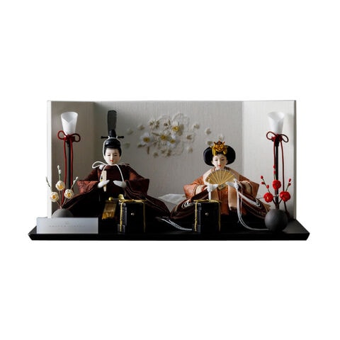 雛人形 コンパクト おしゃれ モダン 親王飾り インテリア お雛様 雛 高級 PREFER CLASSIC ひな人形 [黒塗台 桜霞屏風 平飾り お道具付 貝桶 油灯 紅白梅 人形極々小サイズ 選べる人絹衣裳2種類 縁路 月城] 【縁路 ケースなし】