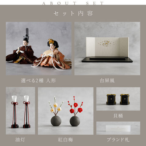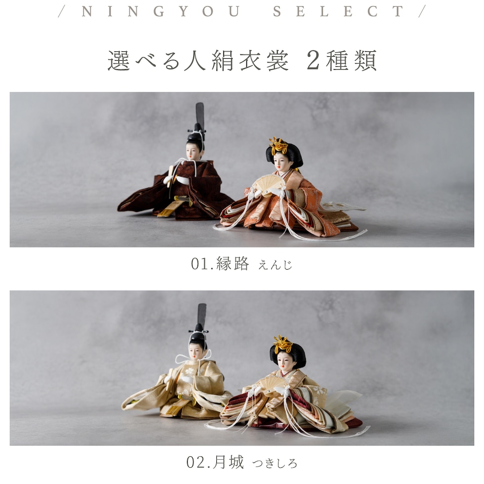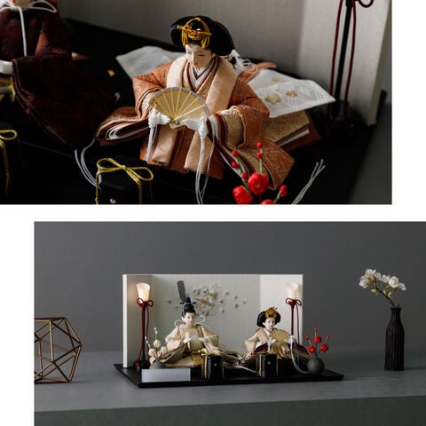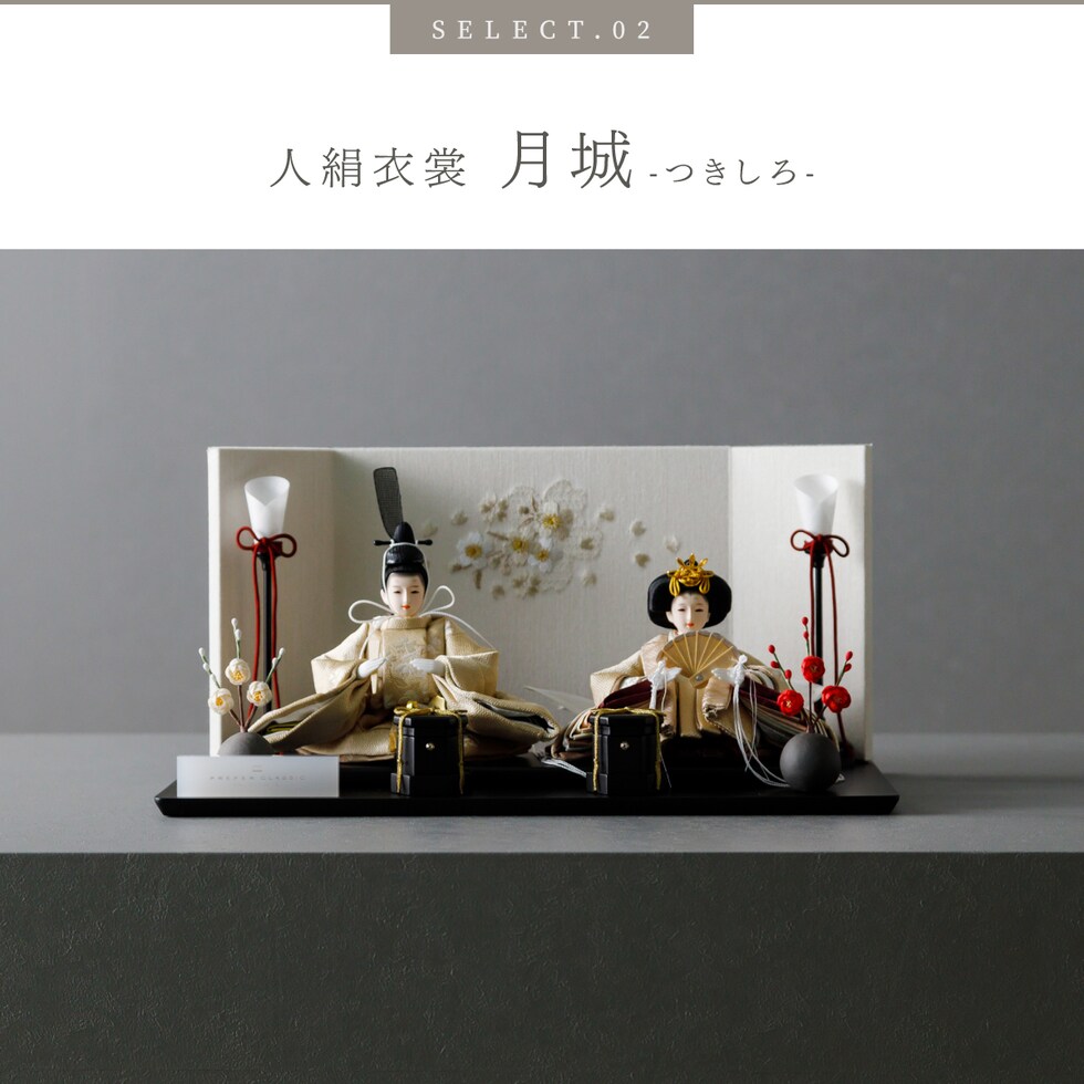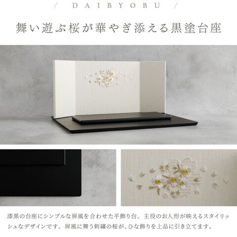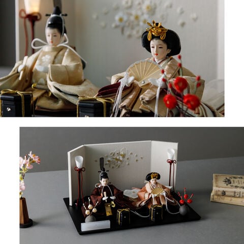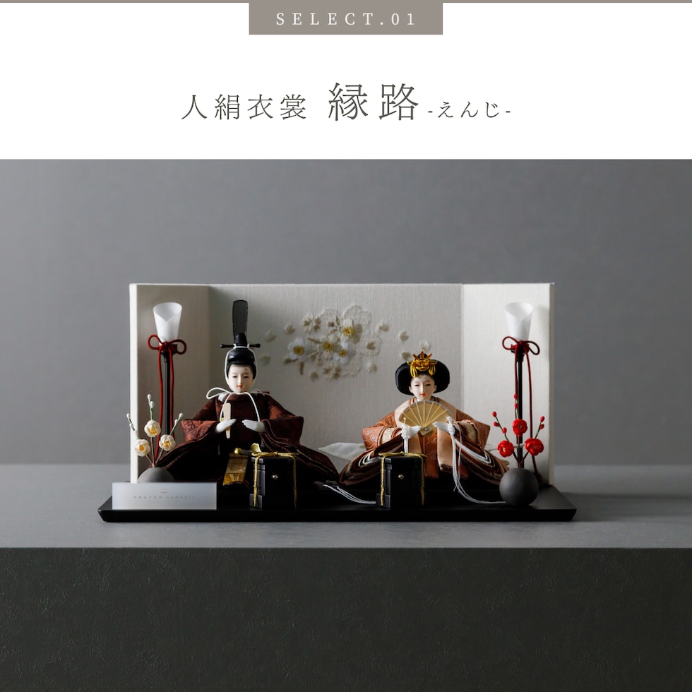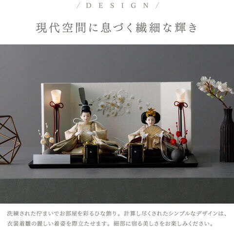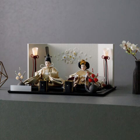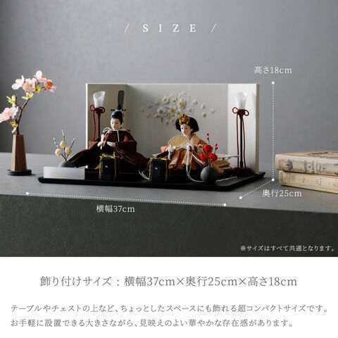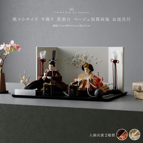 雛人形 コンパクト おしゃれ モダン 親王飾り インテリア お雛様 雛 高級 PREFER CLASSIC ひな人形 [黒塗台 桜霞屏風 平飾り お道具付 貝桶 油灯 紅白梅 人形極々小サイズ 選べる人絹衣裳2種類 縁路 月城] 【縁路 ケース付属】