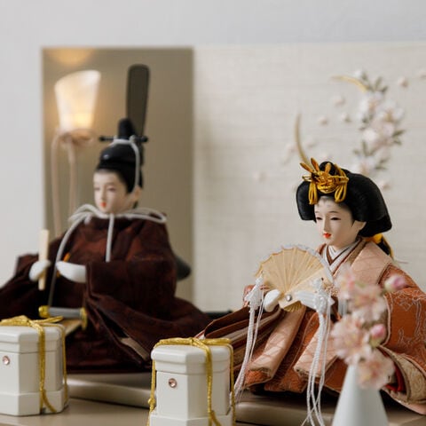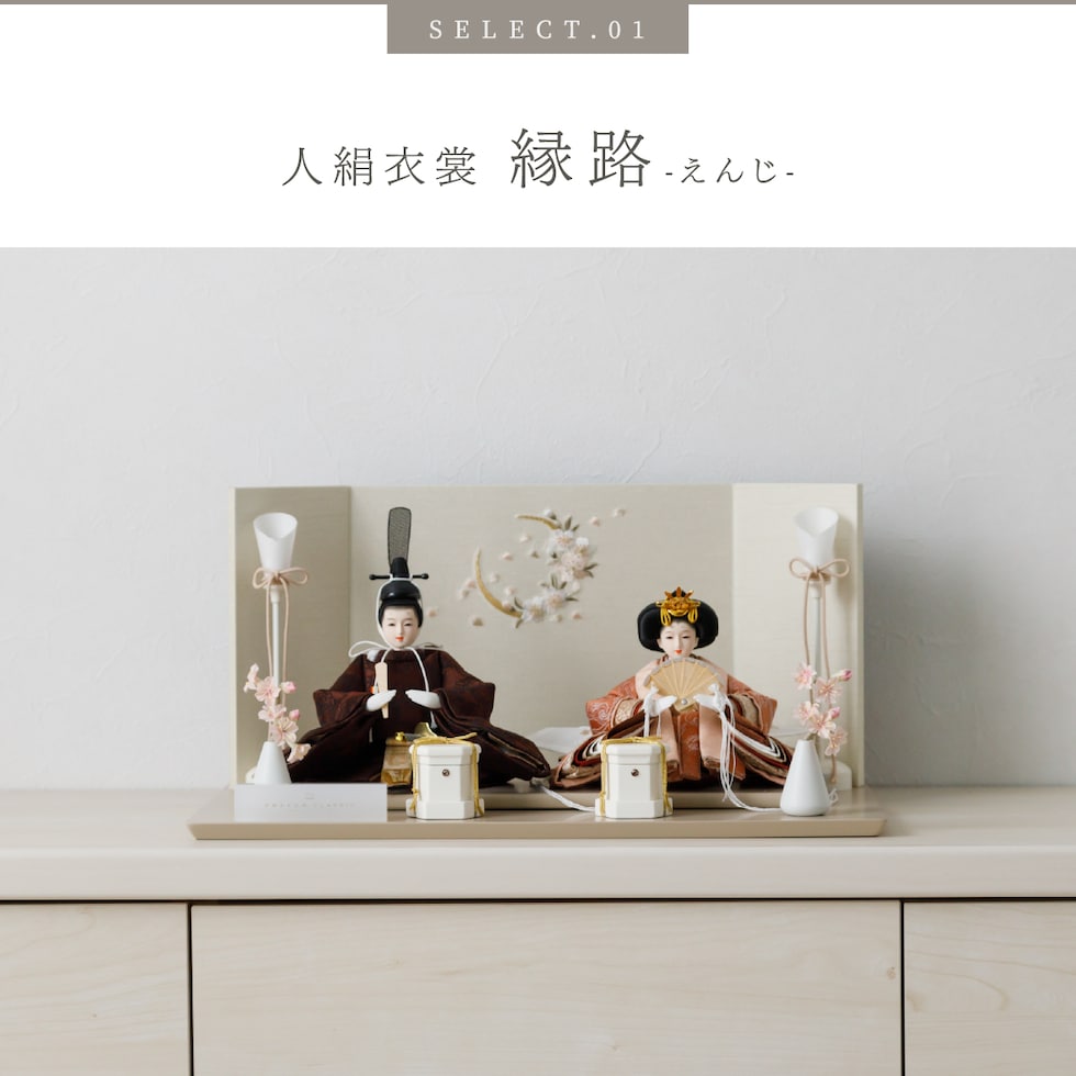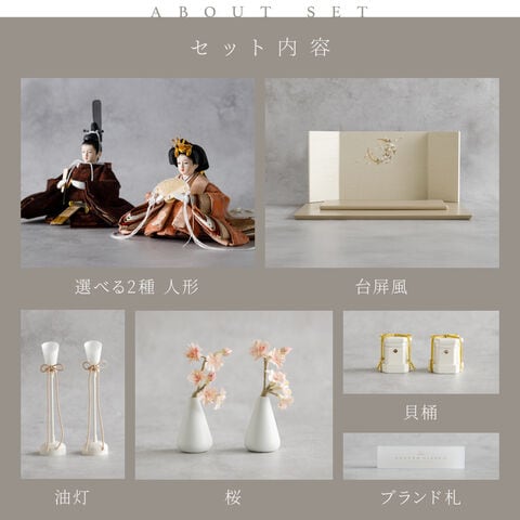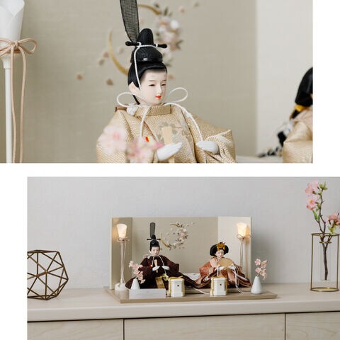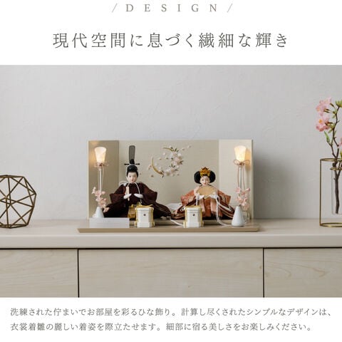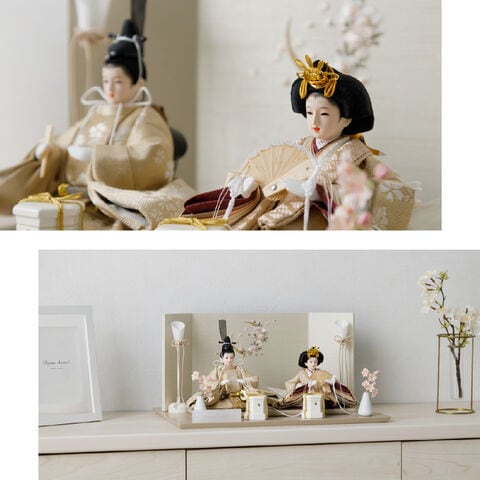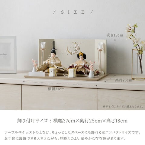 雛人形 コンパクト おしゃれ モダン 親王飾り インテリア お雛様 雛 高級 PREFER CLASSIC ひな人形 [ベージュ台 桜月刺繍屏風 平飾り お道具付 貝桶 油灯 枝桜ピンク 人形極々小サイズ 選べる人絹衣裳2種類 縁路 月城] 【月城 ケースなし】