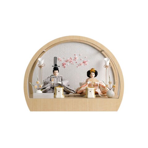 雛人形 コンパクト おしゃれ モダン 親王飾り インテリア お雛様 雛 高級 PREFER CLASSIC ひな人形 [丸型ケース飾り お道具付 貝桶 油灯 白梅 人形極々小サイズ 選べる衣裳4種類 郁乃 澄葉 優白 千景] 【郁乃】