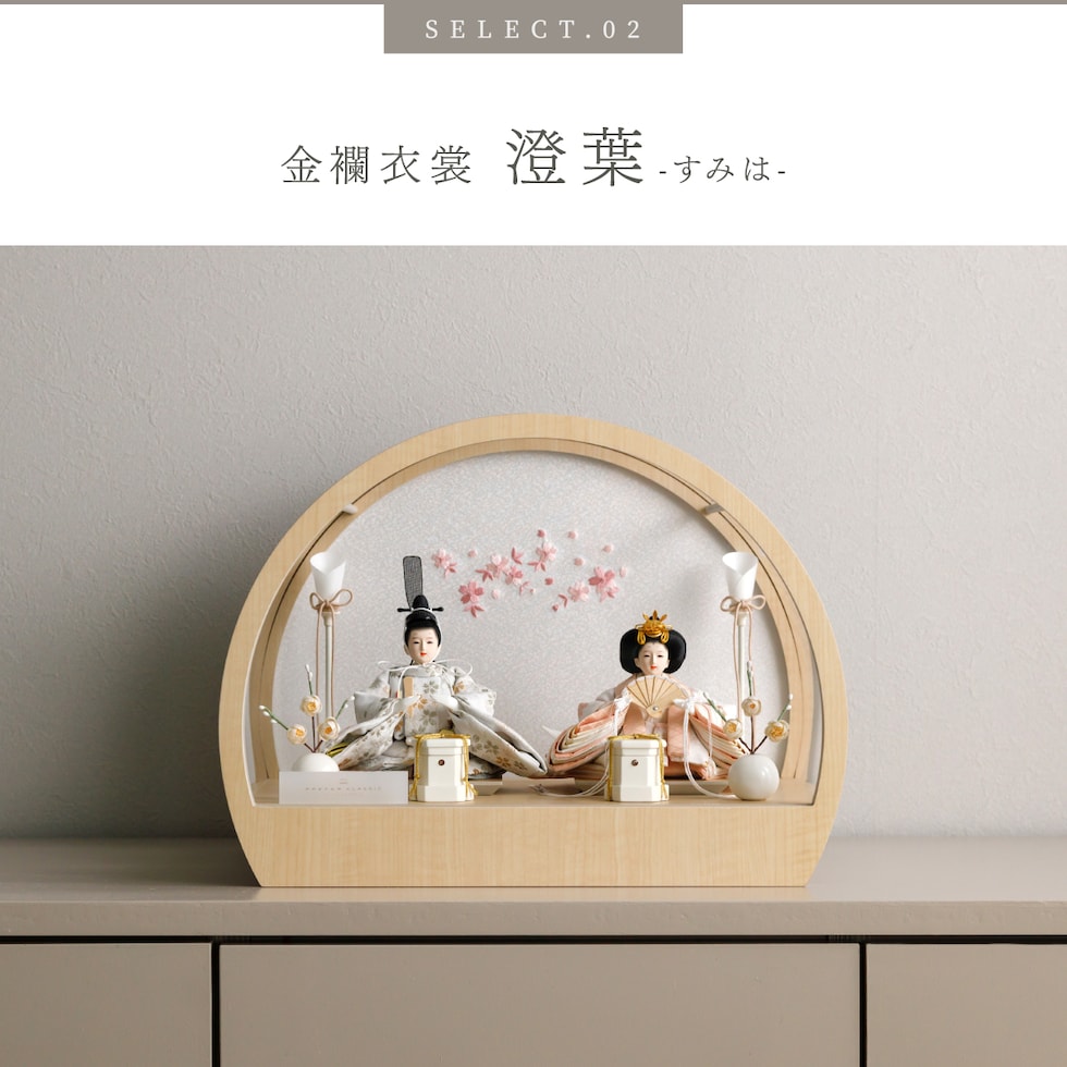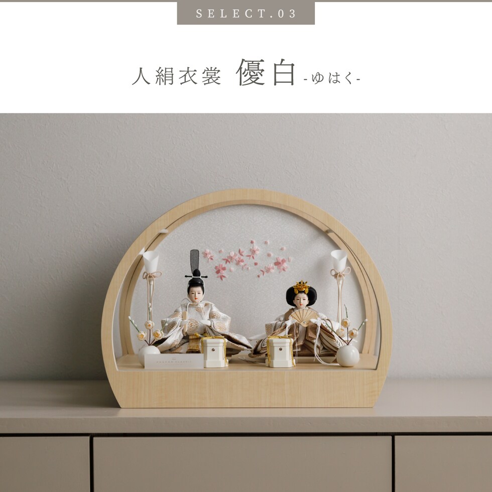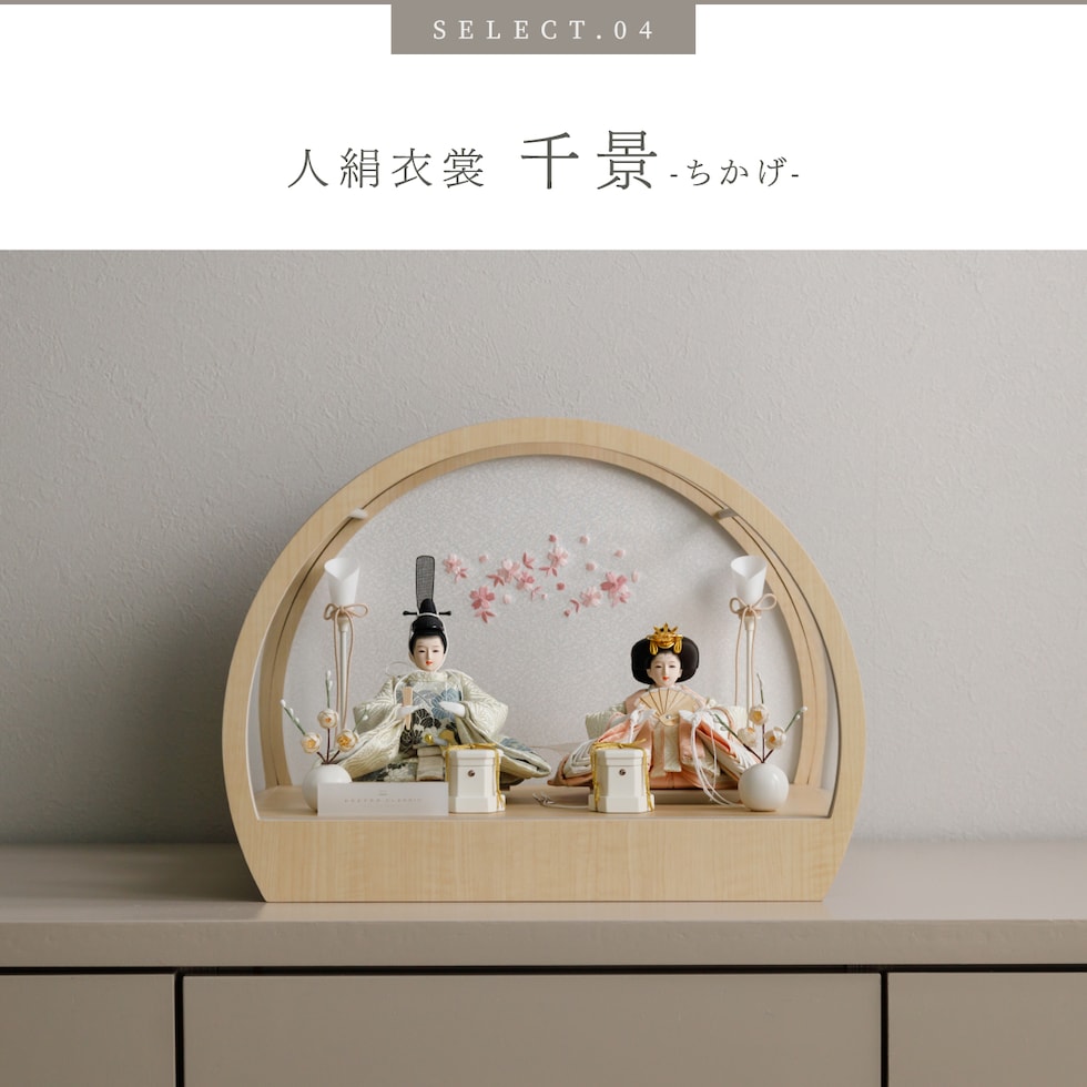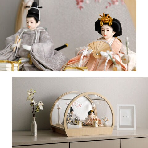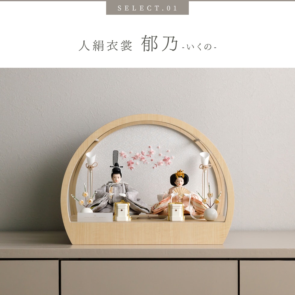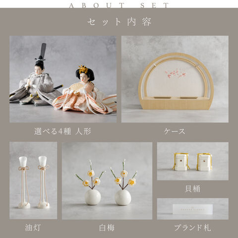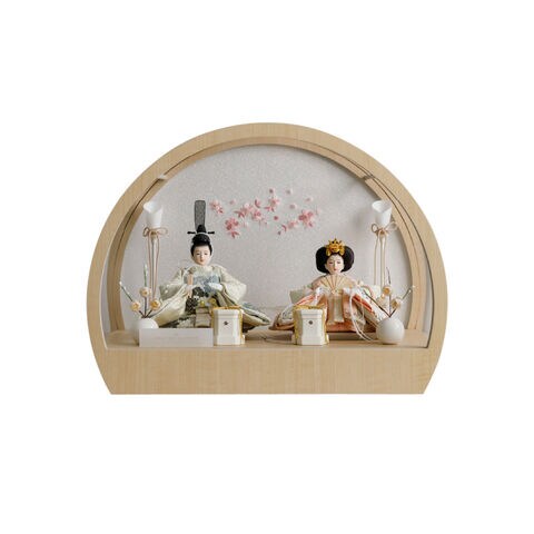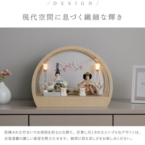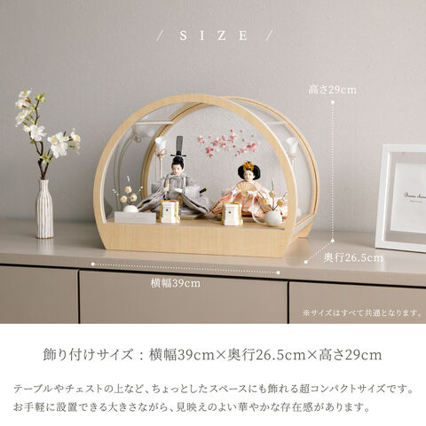 雛人形 コンパクト おしゃれ モダン 親王飾り インテリア お雛様 雛 高級 PREFER CLASSIC ひな人形 [丸型ケース飾り お道具付 貝桶 油灯 白梅 人形極々小サイズ 選べる衣裳4種類 郁乃 澄葉 優白 千景] 【千景】