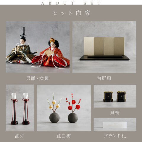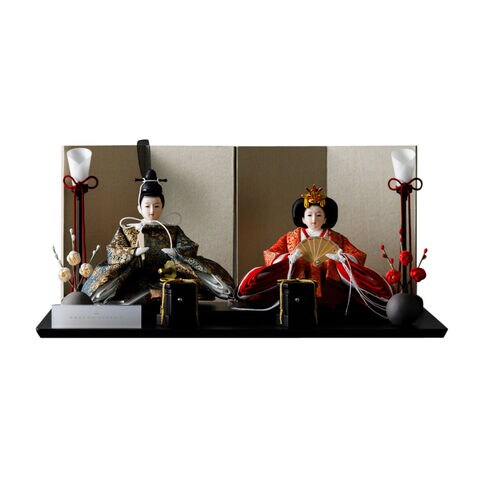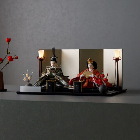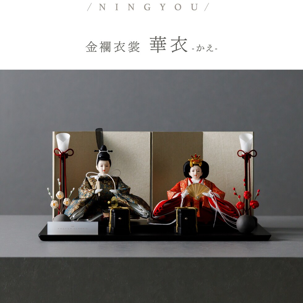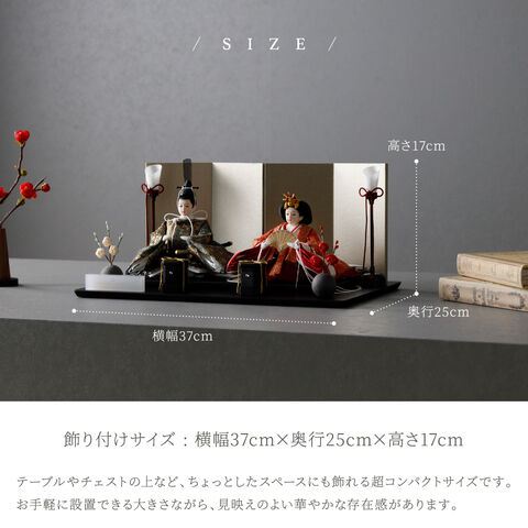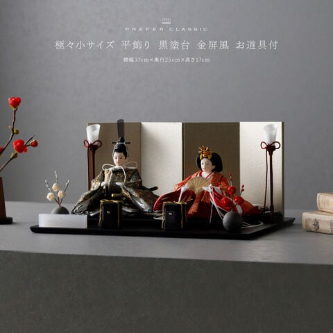 雛人形 コンパクト おしゃれ モダン 親王飾り インテリア お雛様 雛 高級 PREFER CLASSIC ひな人形 [黒塗台 金屏風 平飾り お道具付 貝桶 油灯 紅白梅 人形極々小サイズ 金襴衣裳 華衣] 【ケースなし】