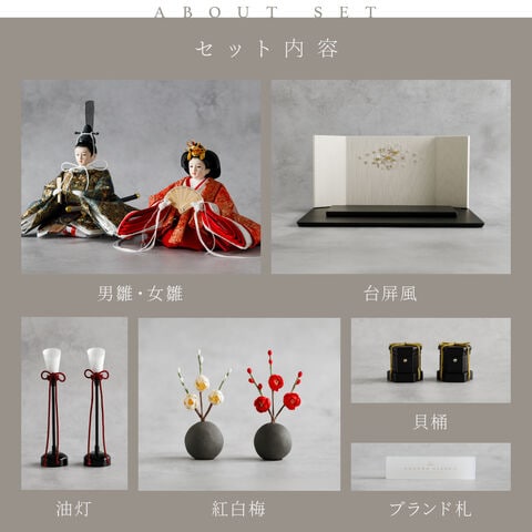 雛人形 コンパクト おしゃれ モダン 親王飾り インテリア お雛様 雛 高級 PREFER CLASSIC ひな人形 [黒塗台 桜霞屏風 平飾り お道具付 貝桶 油灯 紅白梅 人形極々小サイズ 金襴衣裳 華衣] 【ケース付属】