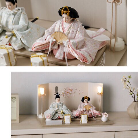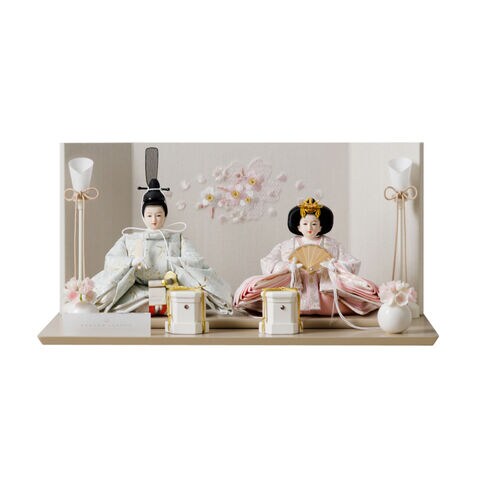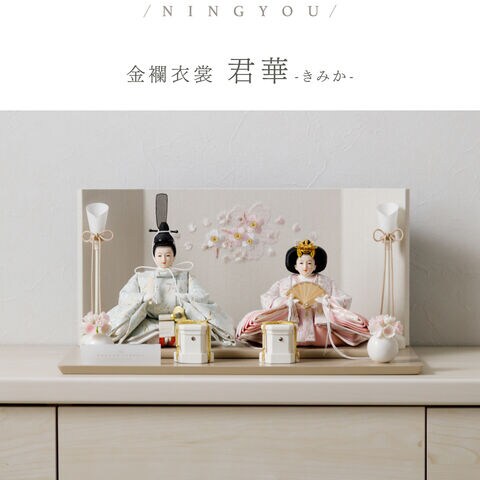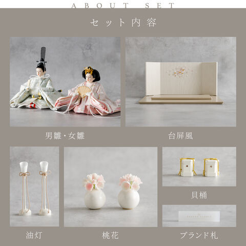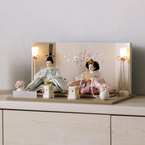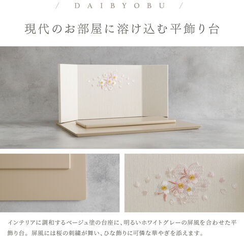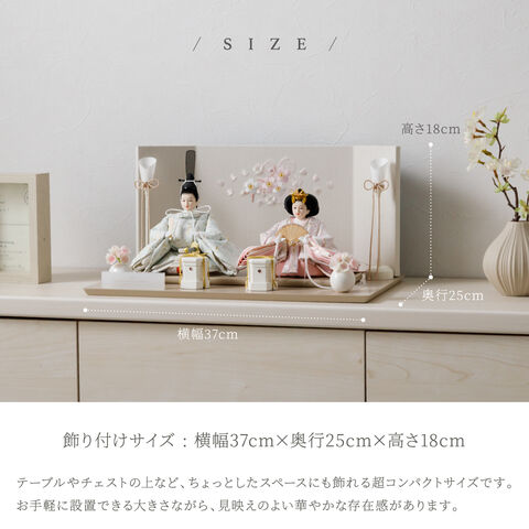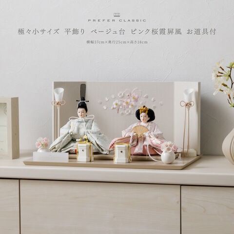 雛人形 コンパクト おしゃれ モダン 親王飾り インテリア お雛様 雛 高級 PREFER CLASSIC ひな人形 [ベージュ台 桜霞屏風 平飾り お道具付 貝桶 油灯 桜橘 人形極々小サイズ 金襴衣裳 君華] 【ケースなし】