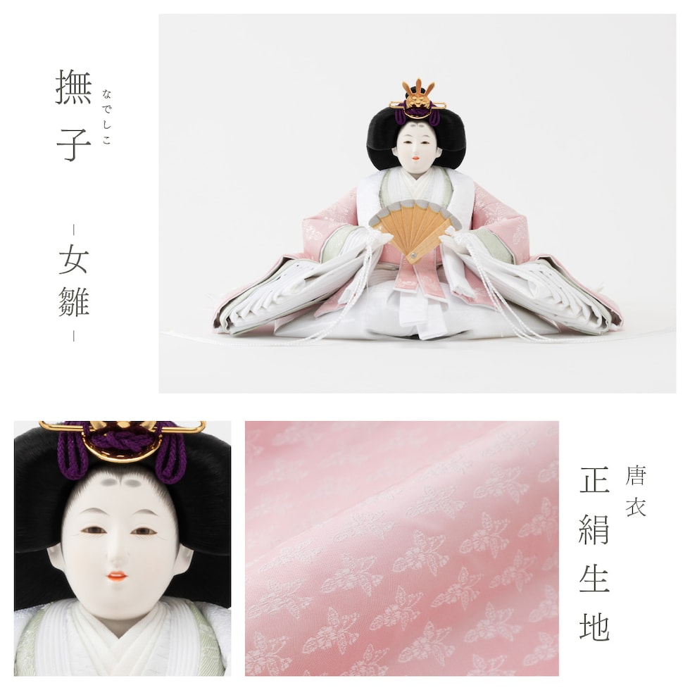 雛人形 おしゃれ モダン 親王飾り インテリア お雛様 雛 高級 PREFER CLASSIC ひな人形 [檜台 白屏風 平飾り お道具付 しだれ桜 三方小桜 雪洞 人形大サイズ 正絹衣裳 撫子]