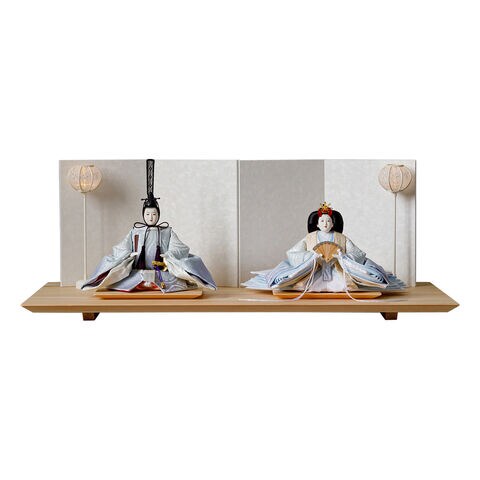 雛人形 おしゃれ モダン 親王飾り インテリア お雛様 雛 高級 PREFER CLASSIC ひな人形 [檜台 白屏風 平飾り 選べる灯り2種類 油灯 雪洞 人形大サイズ 正絹衣裳 淡青] 【雪洞】