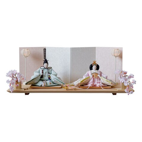 雛人形 おしゃれ モダン 親王飾り インテリア お雛様 雛 高級 PREFER CLASSIC ひな人形 [檜台 桃白屏風 平飾り お道具付 しだれ桜 三方小桜 雪洞 人形大サイズ 選べる金襴衣裳4種類 美鈴 山桜 藍音 蒼梅] 【山桜】