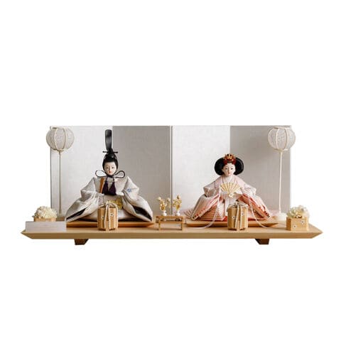 雛人形 おしゃれ モダン 親王飾り インテリア お雛様 雛 高級 PREFER CLASSIC ひな人形 [檜台 白屏風 平飾り お道具付 貝桶花 雪洞 人形小サイズ 選べる金襴衣裳4種類 星欄 羅未 桜央 絃凪] 【星欄】