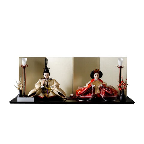 雛人形 おしゃれ モダン 親王飾り インテリア お雛様 雛 高級 PREFER CLASSIC ひな人形 [黒塗台 平飾り お道具付 紅白梅 三方梅 油灯 選べる屏風2種類 金屏風 白屏風 人形小サイズ 選べる金襴衣裳5種類 佑來 満陽 佳軟 羅綾 梅重] 【佑來 金屏風】