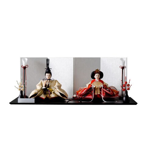 雛人形 おしゃれ モダン 親王飾り インテリア お雛様 雛 高級 PREFER CLASSIC ひな人形 [黒塗台 平飾り お道具付 紅白梅 三方梅 油灯 選べる屏風2種類 金屏風 白屏風 人形小サイズ 選べる金襴衣裳5種類 佑來 満陽 佳軟 羅綾 梅重] 【佑來 白屏風】