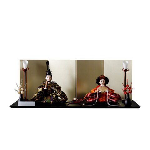 雛人形 おしゃれ モダン 親王飾り インテリア お雛様 雛 高級 PREFER CLASSIC ひな人形 [黒塗台 平飾り お道具付 紅白梅 三方梅 油灯 選べる屏風2種類 金屏風 白屏風 人形小サイズ 選べる金襴衣裳5種類 佑來 満陽 佳軟 羅綾 梅重] 【満陽 金屏風】