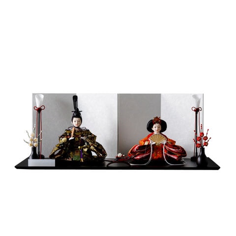雛人形 おしゃれ モダン 親王飾り インテリア お雛様 雛 高級 PREFER CLASSIC ひな人形 [黒塗台 平飾り お道具付 紅白梅 三方梅 油灯 選べる屏風2種類 金屏風 白屏風 人形小サイズ 選べる金襴衣裳5種類 佑來 満陽 佳軟 羅綾 梅重] 【満陽 白屏風】