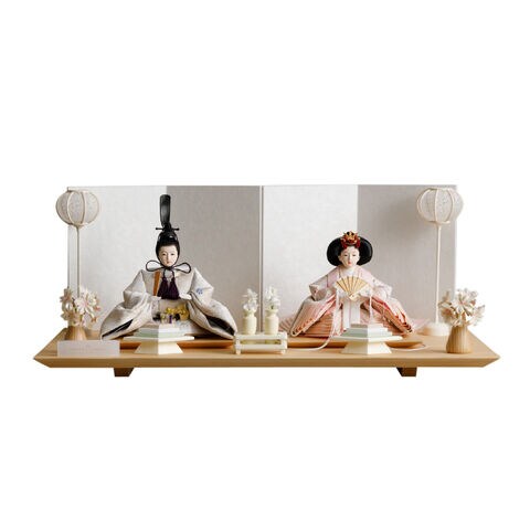 雛人形 おしゃれ モダン 親王飾り インテリア お雛様 雛 高級 PREFER CLASSIC ひな人形 [檜台 白屏風 平飾り お道具付 貝桶花 雪洞 人形小サイズ 選べる金襴衣裳4種類 星欄 羅未 桜央 絃凪] 【星欄】